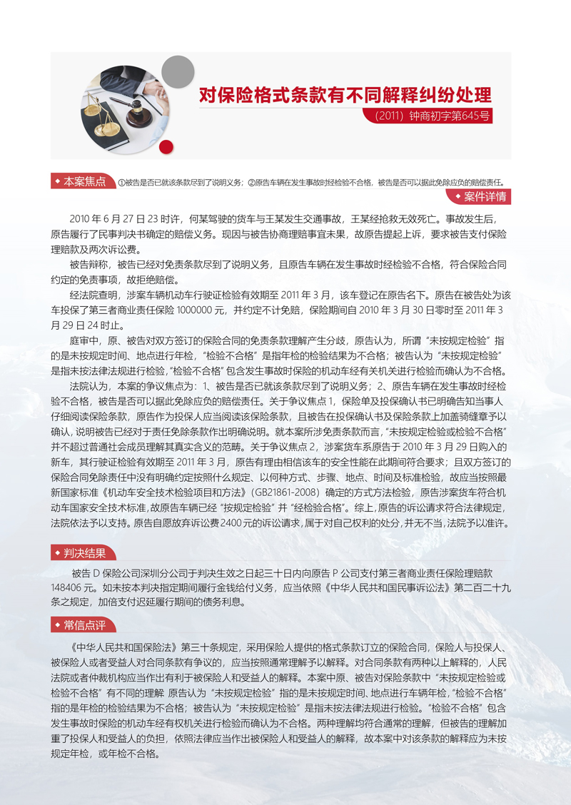 常信典型案例:對(duì)保險(xiǎn)格式條款有不同解釋糾紛處理